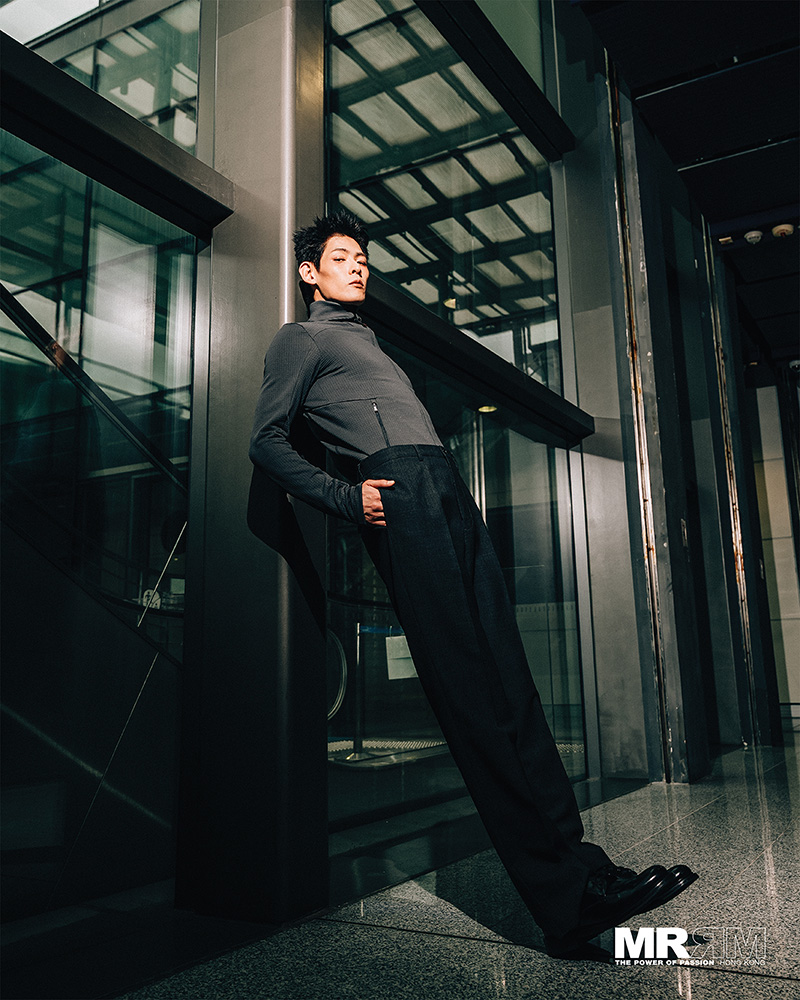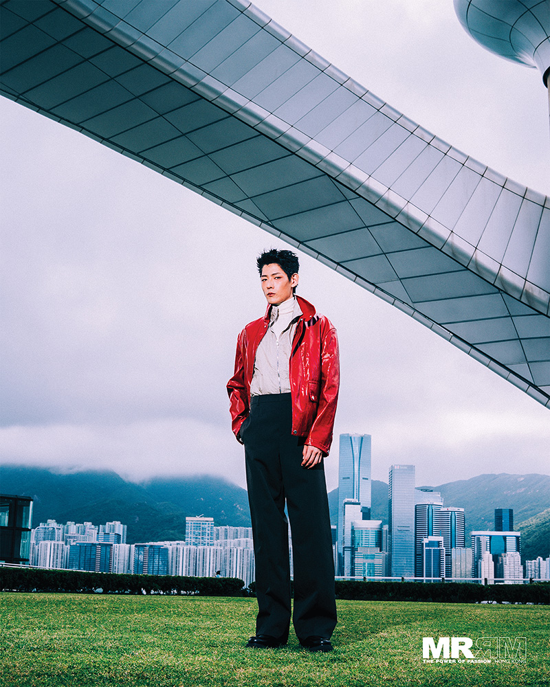 在石屎森林的脈絡中,他以萬丈姿態撘上鋼筋的孤寂,能量粒子從青草纏繞到混凝土。當電梯門開合的瞬間,金屬映出都市冷漠的光。 藍天之下,紅色的外套泛起了漣漪,闊褲的擺動,邁過水泥的寂靜。當身體化作藤蔓,夾集在樑與雲的縫隙,又吊掛於管線之間,便想尋找一絲優悠的綠意。雖然羅馬不是一朝一夕建成,但文明都以時尚為刃,引領都市啓靈。
