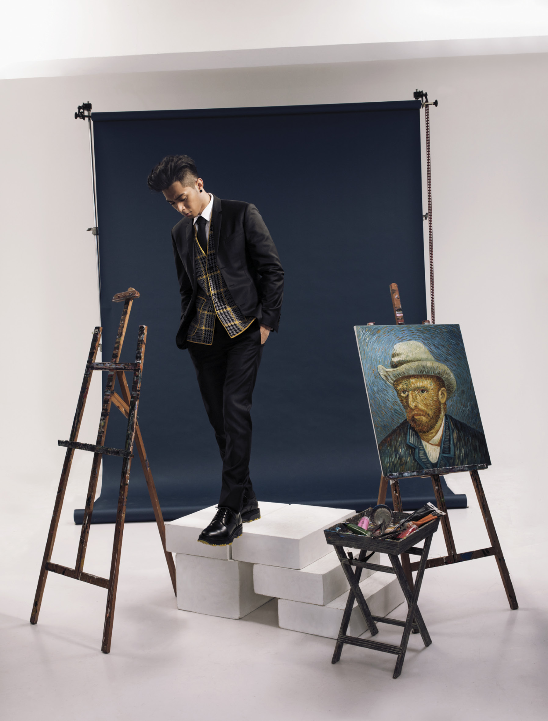 「藝術」二字在香港不值一文,純以藝術行頭,彷彿最終只會落得被擱置於一邊默默枯萎的下場。更可悲的是,藝術想要在香港生存,必須淪為商業戰爭中的一項策略,依附著商業才可找到一絲的生存空間與價值。在這個令人氣餒的氛圍下,卻有這麼一個愛藝術的「傻小子」仍然愛上這一切的工作,並不是他成功說服自己向金錢低頭,而是他懂得在這冷血無情的商業世界中,找到一點自我的空間,從心經營他的藝術,給予香港一點具有情感的色彩。在拍攝封面的這個「星夜」,我見證他走到今天這個位置,全因他懂得在無論任何情況,都會「相安無事」地從內心出發。