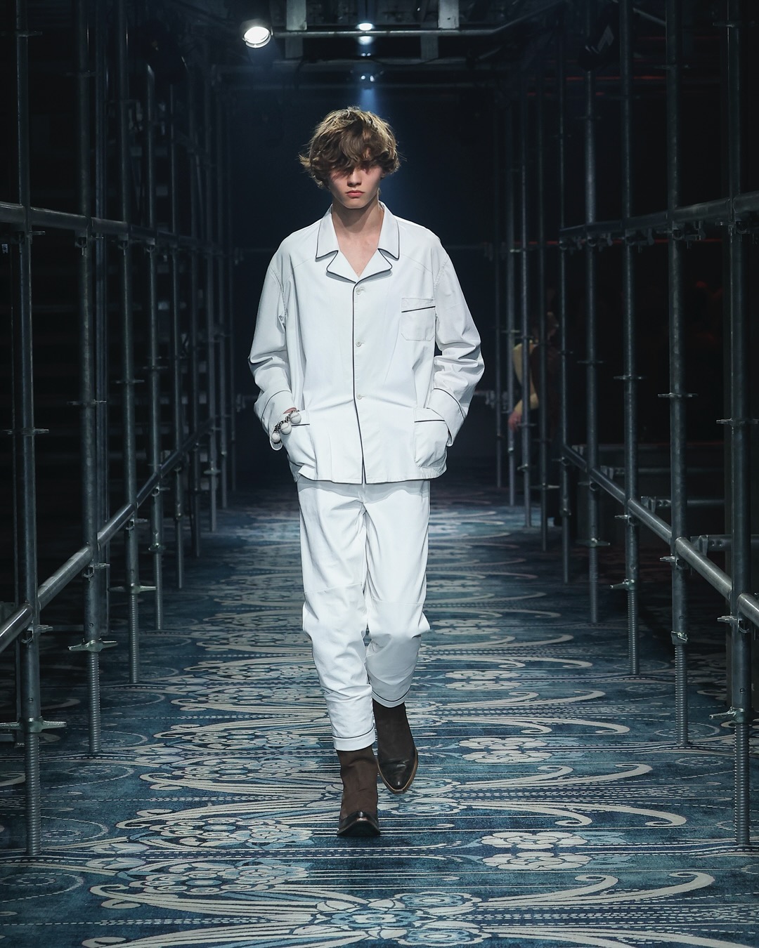遵從「本能的表達」是一件極難的事,本季Prada時裝騷為大家帶來了最精準的答案。現代男士充滿浪漫情調是本季的重點,正如這次的 56 個造型一樣,充滿了矛盾的組合。大衣上披著長毛披肩,敞開著並露出赤裸的胸膛;帶有鄉村風格圖案的迷人上衣與正式的黑色樂福鞋相得益彰;亮紫色長褲與格紋風衣搭配;飛行員夾克搭配牛皮毛襯衫。其中最讓人印象深刻的,是印花的蓬鬆獵人帽與簡約的毛衣和正裝褲搭配,另外還有花朵胸針裝飾的嚴肅的運動夾克。